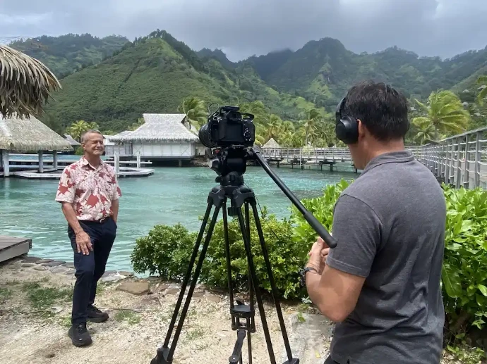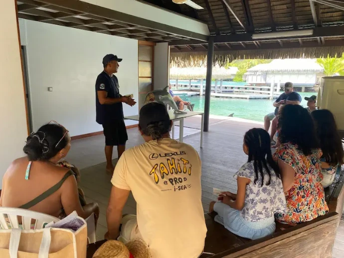 Séance de tournage avec Matahi Tutavae d'Arere Image qui réalise un mini doc sur l'existence de notre sanctuaire, merci aux visiteurs présents qui se sont prêtés au jeu ! L'occasion de mettre en lumière le travail quotidien de nos soigneurs ! Entre préparation de la nourriture, étape de nourrissage, mais aussi de contrôle du bien-être de nos dauphins ! Venez découvrir ces étapes clés en participant au Moana Kea Tour !